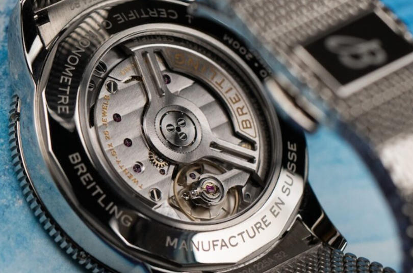 The B31 was developed by Swiss Breitling clone watches over four years in partnership with Sellita, the same manufacturer behind TAG Heuer’s TH31. It’s a 28.4mm diameter, 4.8mm thick automatic with 78 hours of power reserve, 28,800 vph beat rate, and COSC chronometer certification