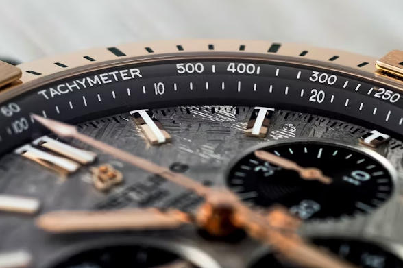The top fake watches UK showcases stunning meteorite dials cut from an iron meteorite discovered in Sweden, revealing the natural Widmanstätten pattern formed during millions of years of slow cooling in space. The GMT 40 features a stainless steel case with a platinum bezel, while the B01 42 boasts an 18k red gold case with black chronograph subdials. Both models feature Haaland’s initials on the central seconds hand and his signature goal celebration pose engraved on the caseback, available with either metal bracelets or rubber straps.